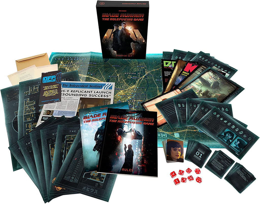 This is the Starter Set for the official BLADE RUNNER Roleplaying Game. A neon noir wonderland that will take your breath away, one way or another. An evocative world of conflicts and contrasts that dares to ask the hard questions and investigate the power of empathy, the poison of fear, and the burden of being human during inhumane times. An iconic and unforgiving playground of endless possibilities that picks you up, slaps you in the face, and tells you to wake up.
