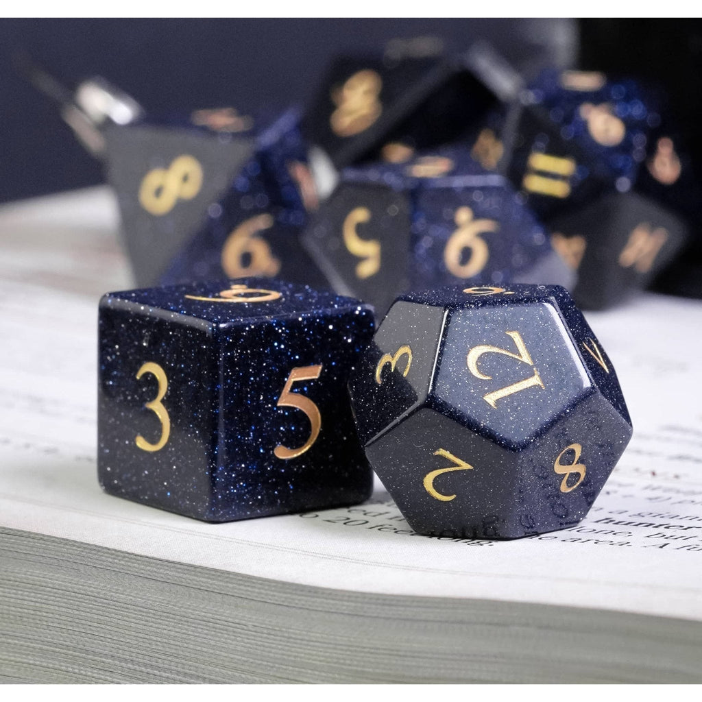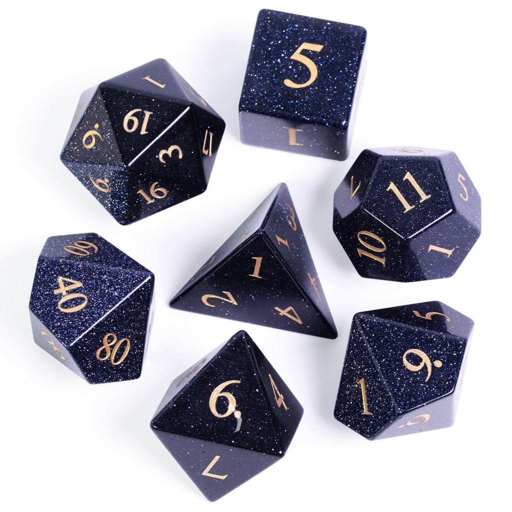 Blue Goldstone Gemstone Dice Set With FREE Leather Holding Case