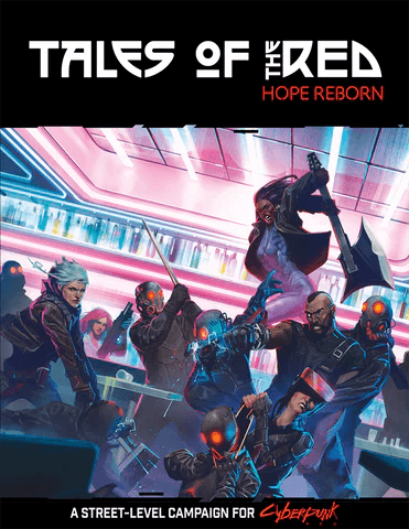 Tales of the RED: Hope Reborn is a mission book for Cyberpunk RED, the latest edition of the original tabletop roleplaying game of the Dark Future. This is a full-length campaign of six job covering every style of play, from Friday Night Firefights to high society booze heists to the biggest bar brawl ever.