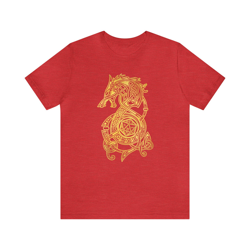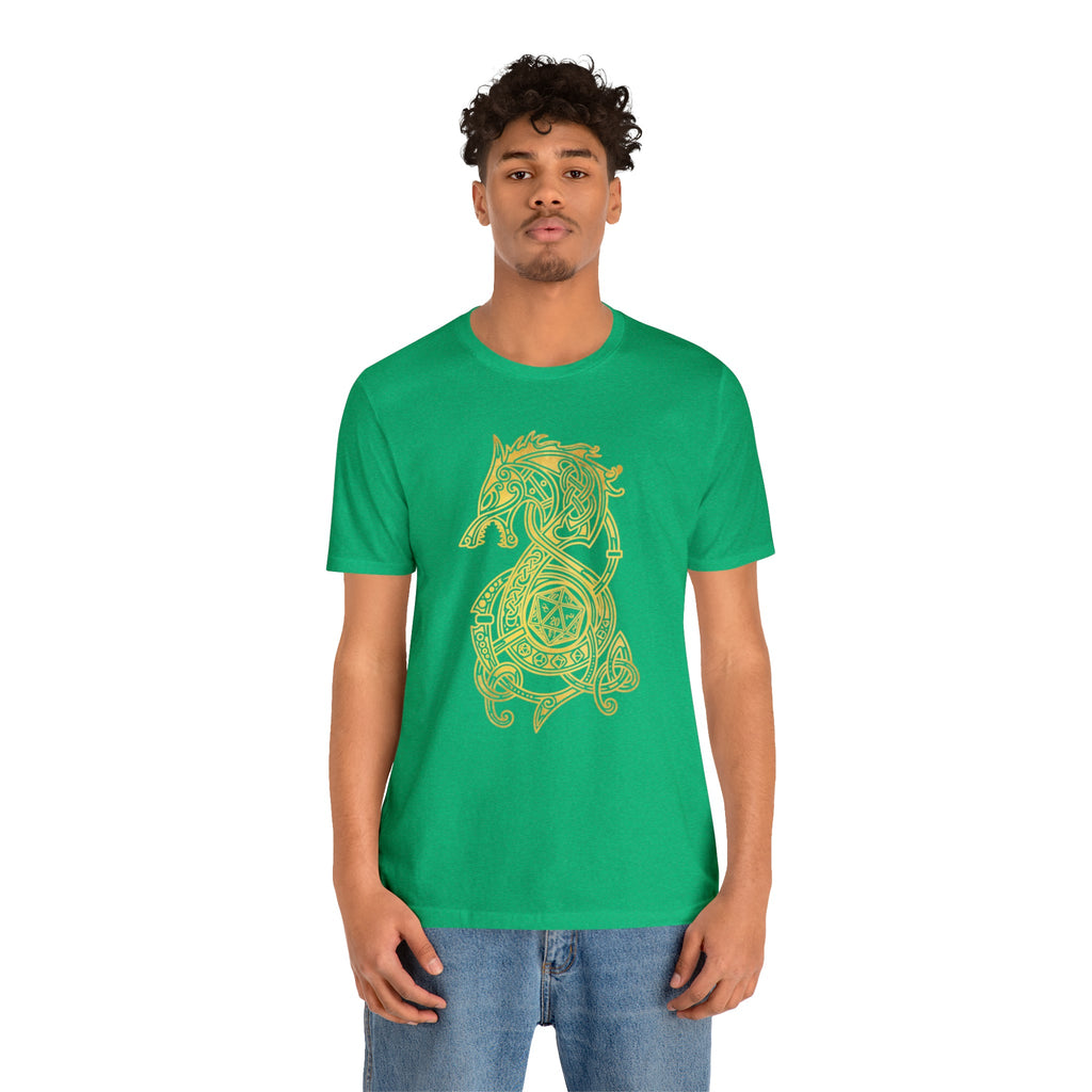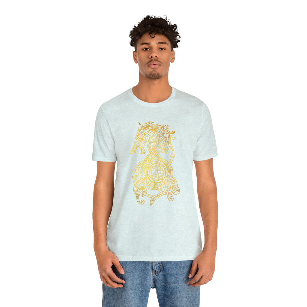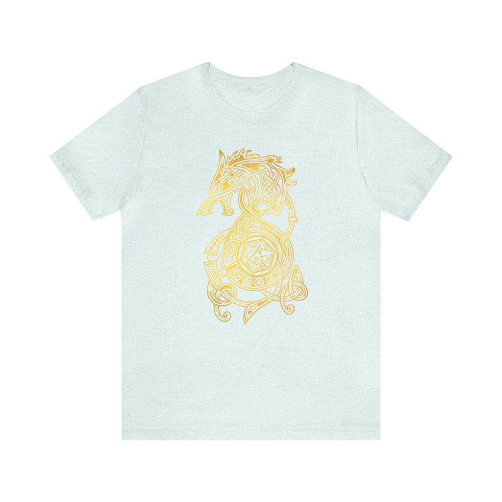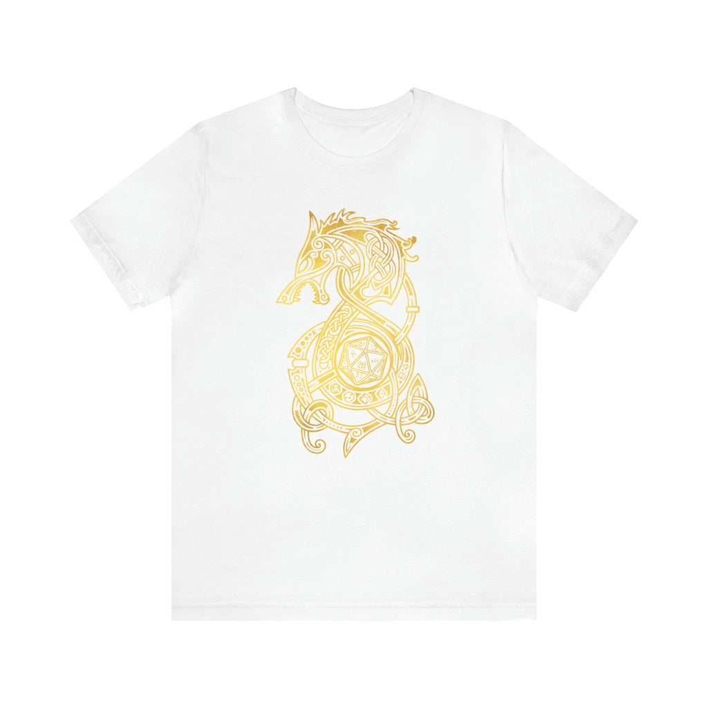 Embark on the journey of a lifetime, adorned in the allure of Celtic mystique and the allure of golden dice, as you forge your path to legendary greatness.This classic unisex jersey short sleeve tee fits like a well-loved favorite. Soft cotton and quality print make users fall in love with it over and over again. These t-shirts have-ribbed knit collars to bolster shaping. The shoulders have taping for better fit over time. Dual side seams hold the garment's shape for longer.