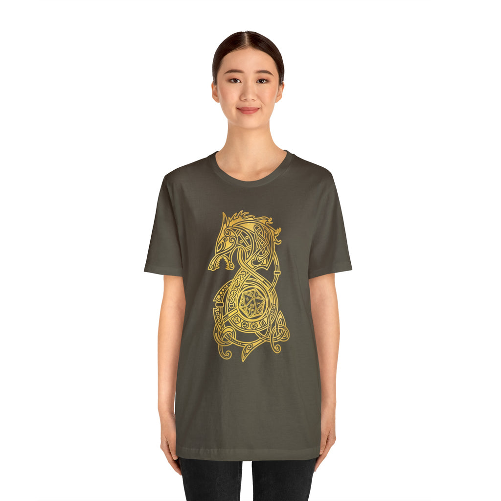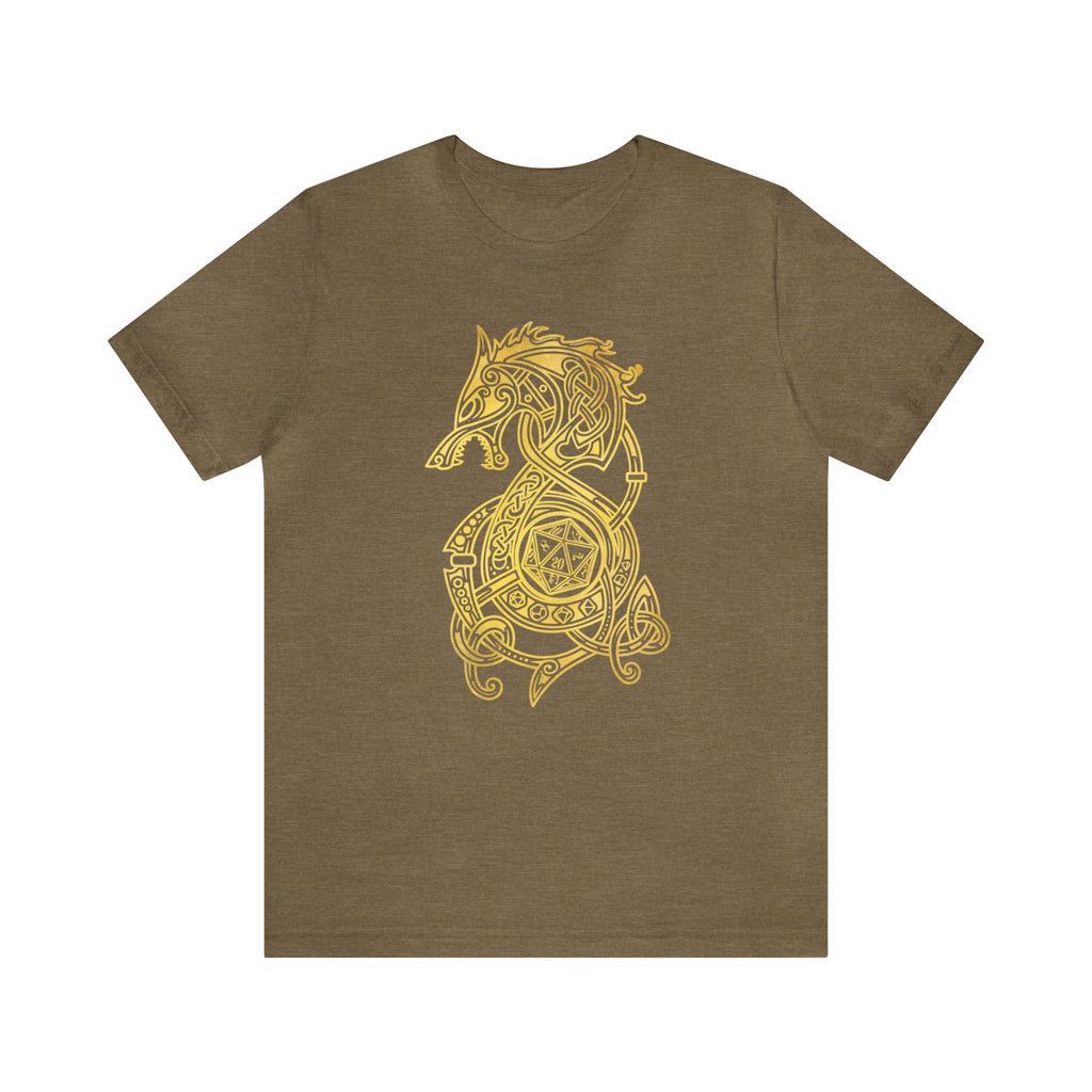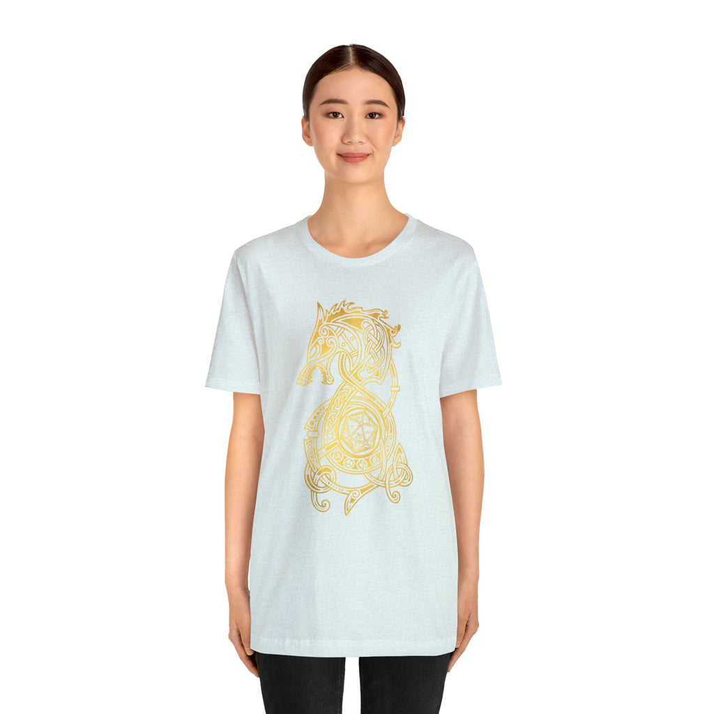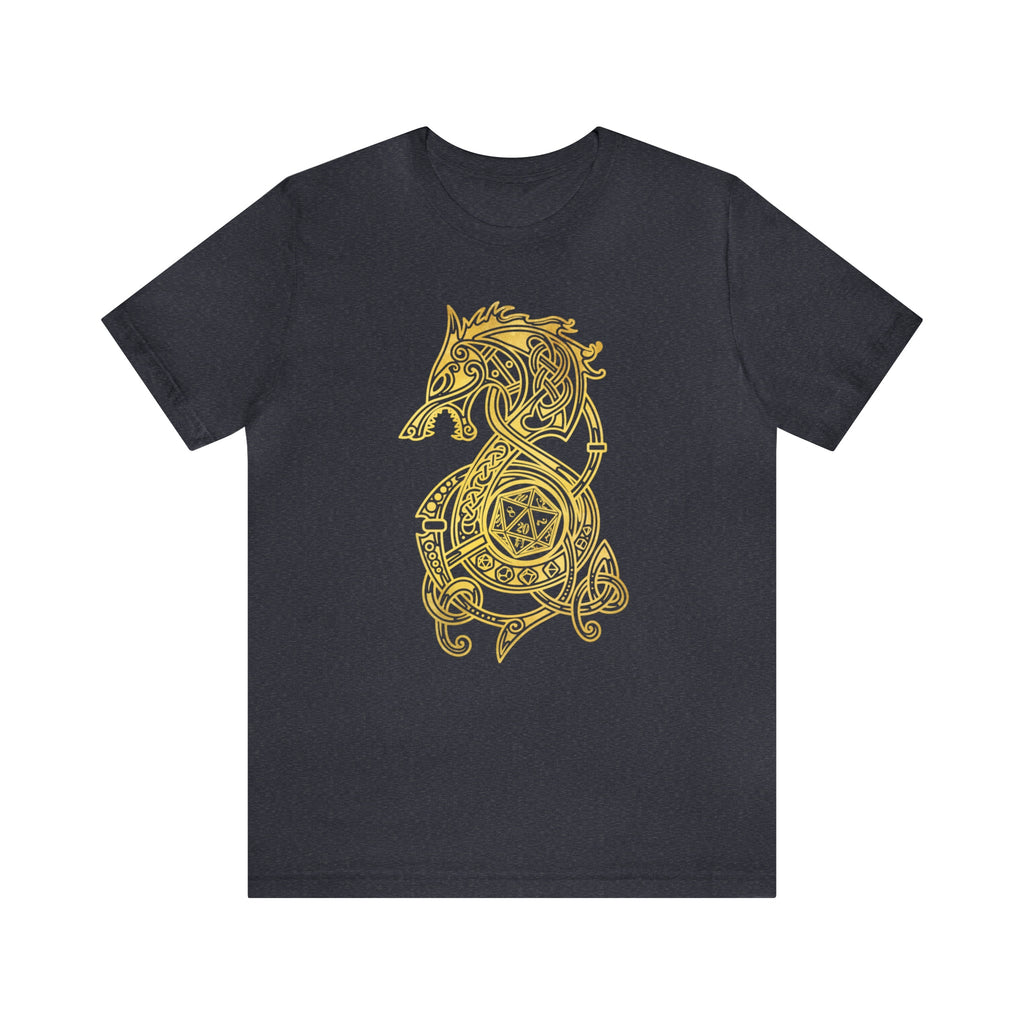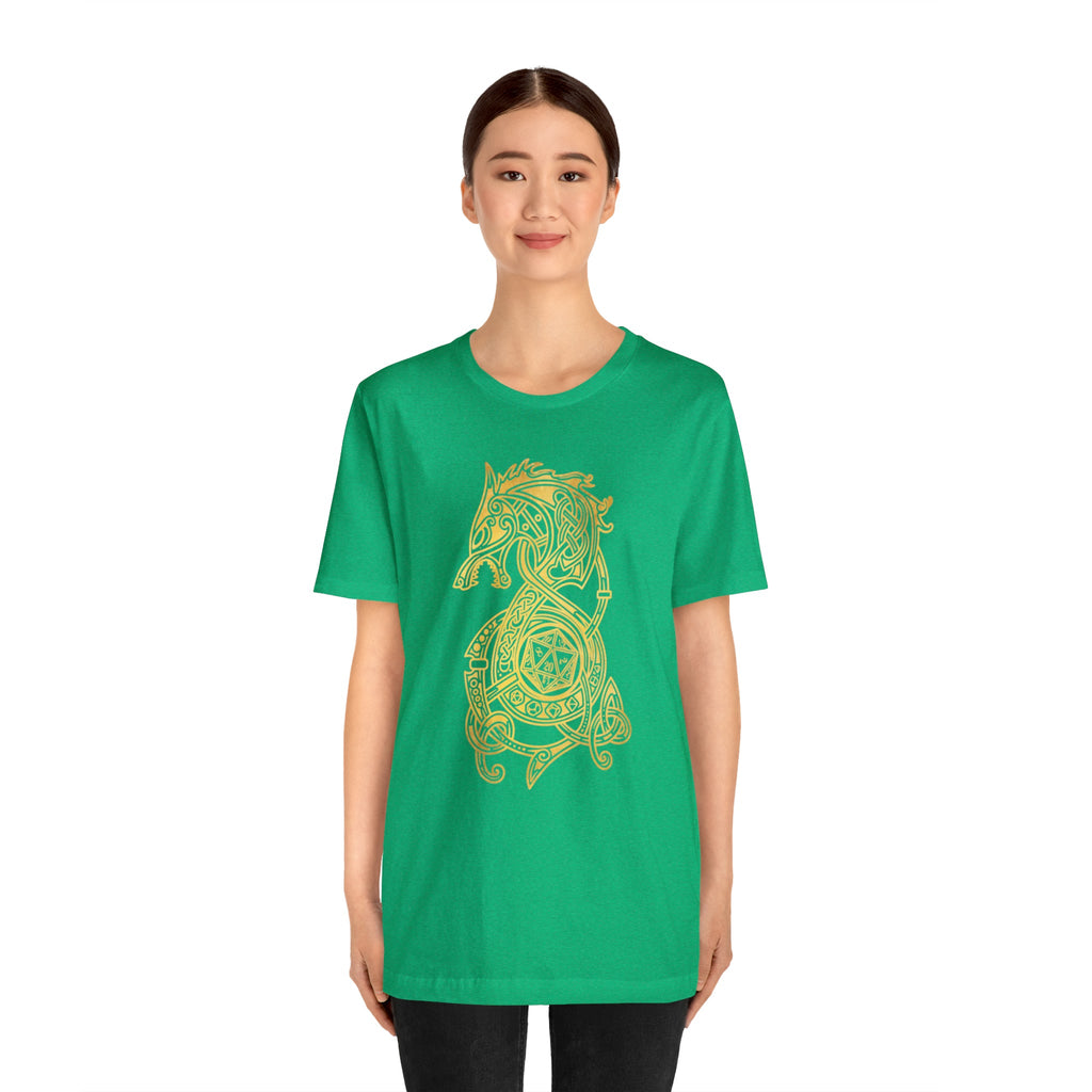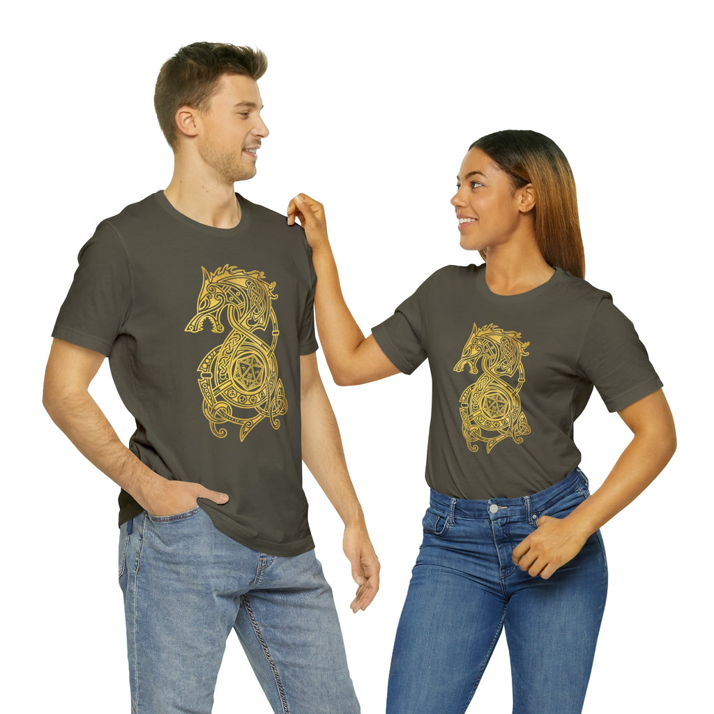 Embark on the journey of a lifetime, adorned in the allure of Celtic mystique and the allure of golden dice, as you forge your path to legendary greatness.This classic unisex jersey short sleeve tee fits like a well-loved favorite. Soft cotton and quality print make users fall in love with it over and over again. These t-shirts have-ribbed knit collars to bolster shaping. The shoulders have taping for better fit over time. Dual side seams hold the garment's shape for longer.
