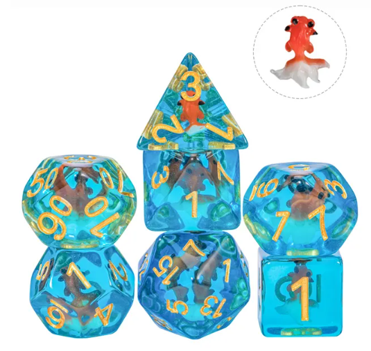 - Great new dnd dice that feature a cute little Goldfish inside.