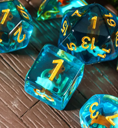 Goldfish Dice 7-Dice Set Blue w/ Goldfish Inside Dnd Dice Sett