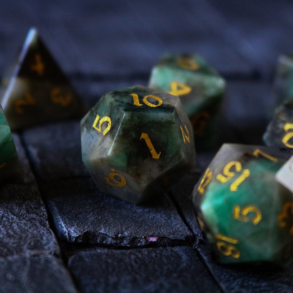 Green Gemstone Emerald Polyhedral Dice Set (With Box)
