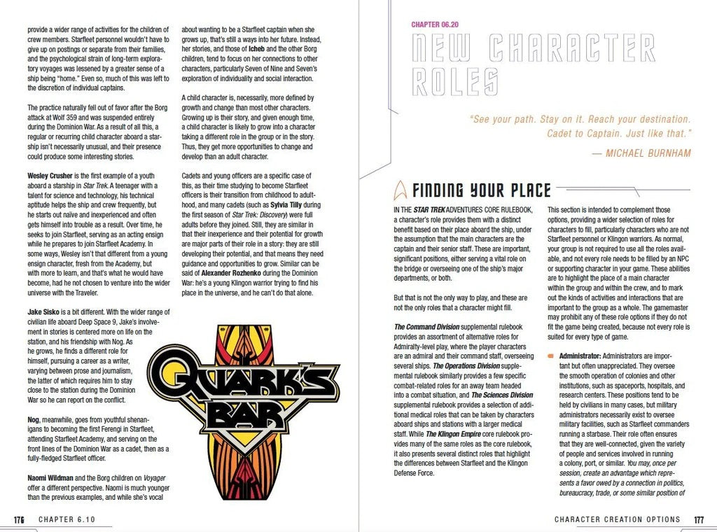 - A wealth of new character options, including new non-Starfleet character roles, more than 40 new talents, additional details on existing character roles and insights into using the game mechanics gleaned from 4 years of feedback and development.
