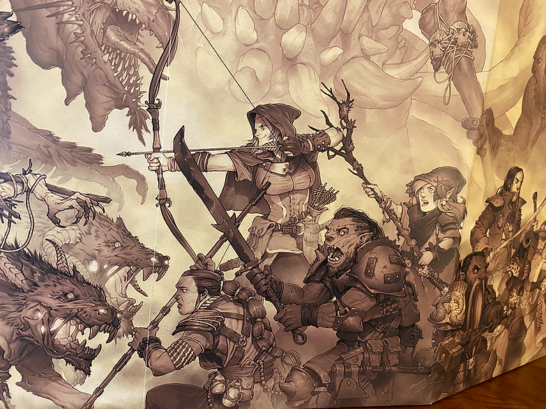 Original, brilliantly-illustrated DM screen features creatures and NPCs from our Friends & Foes box set pitted against each other in battle. Commonly used 5e rules reference on the DM side of the screen. Hit point tracker on the screen for use with dry erase markers!