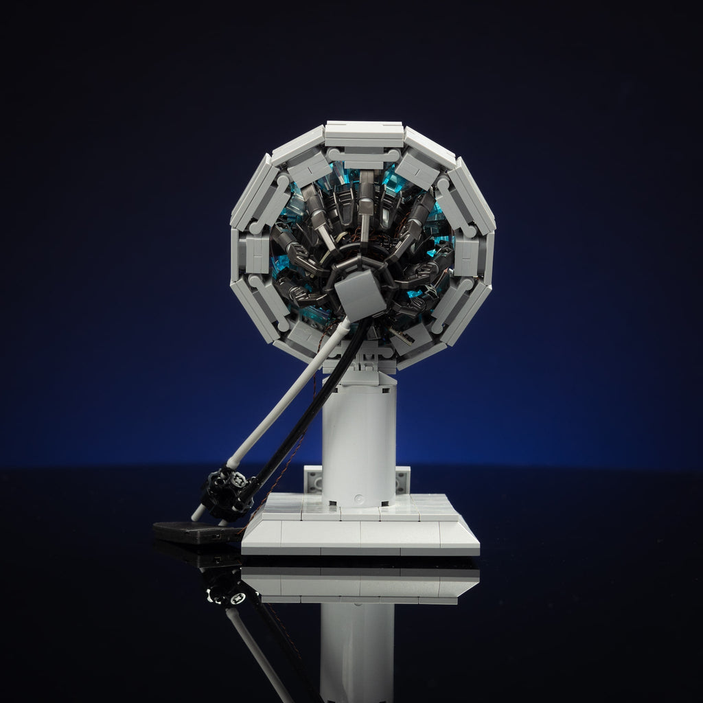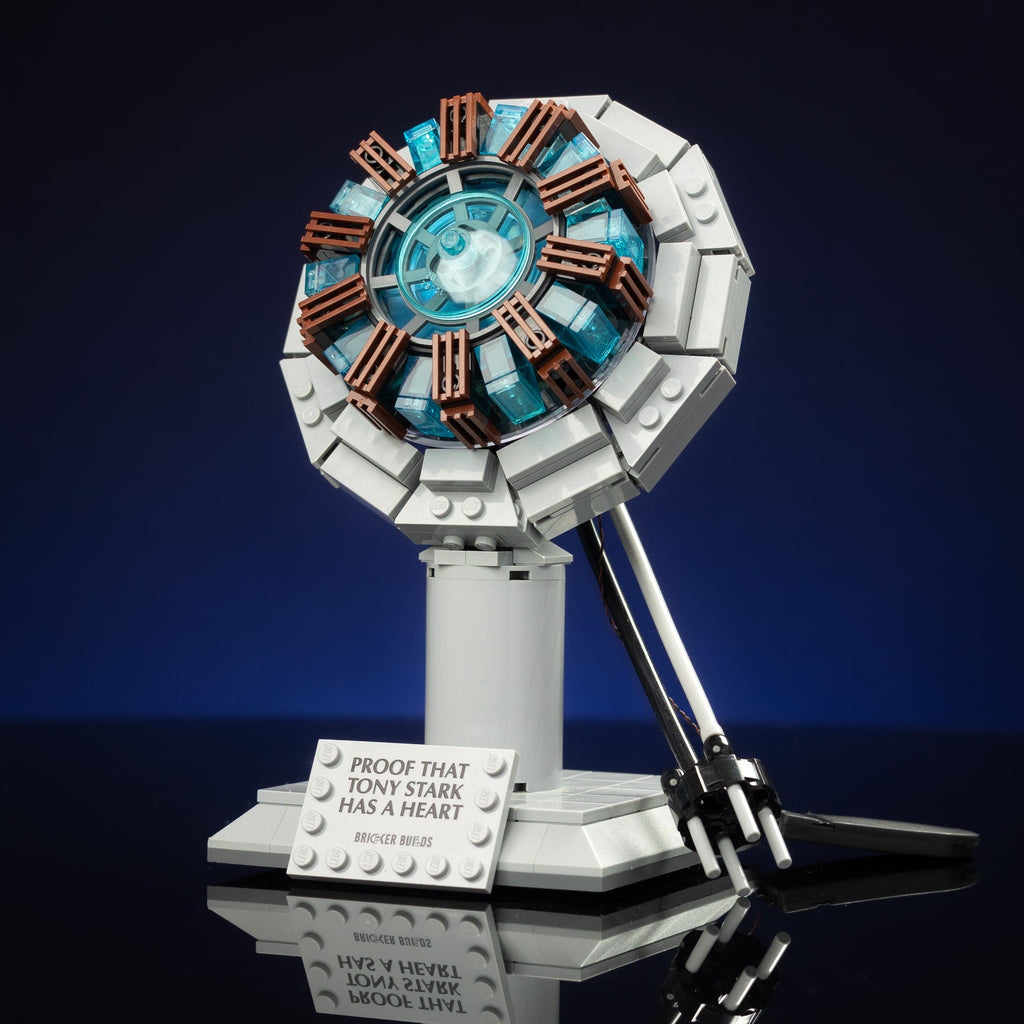 This model also comes with an easy-to-install light kit from Light My Bricks that pulses, bringing the Arc Reactor to life just like the films!