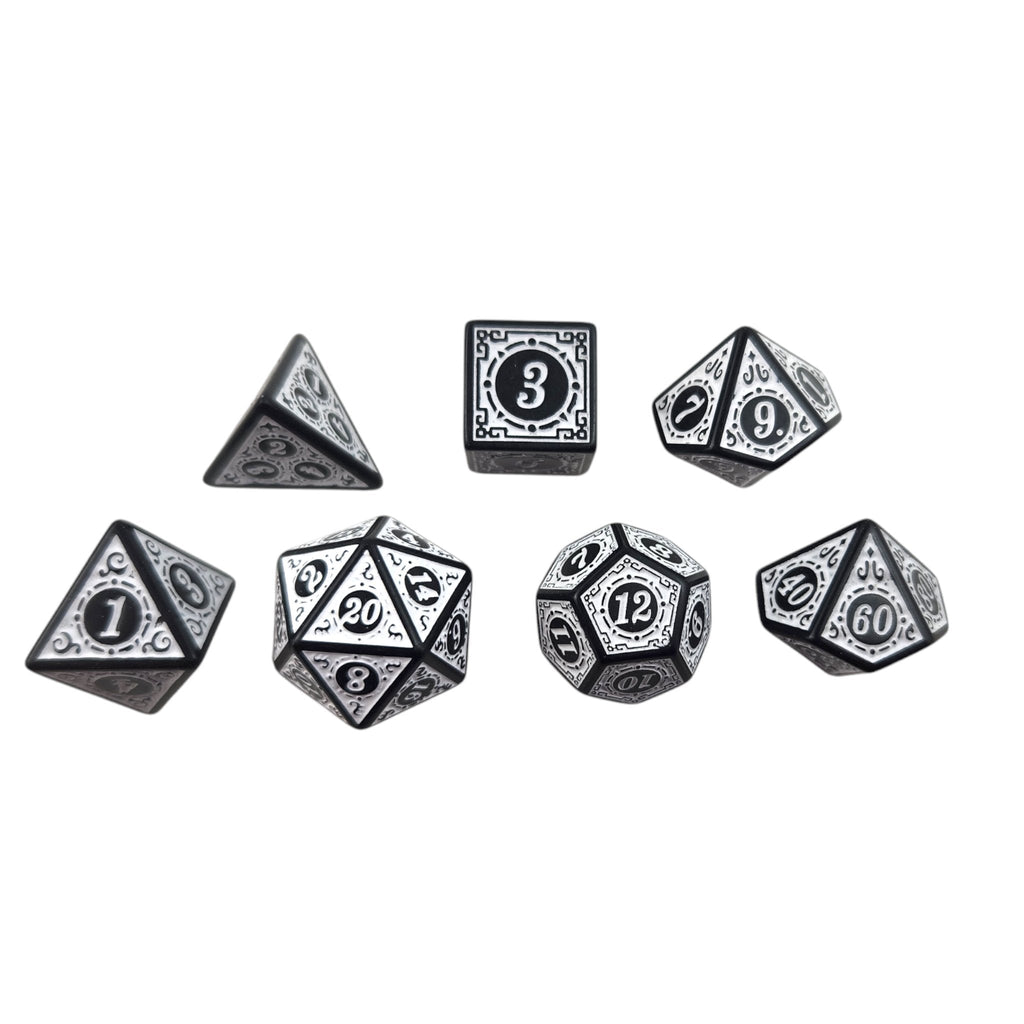 Set of seven light weight polyhedral dice- White and Black decorative dice set