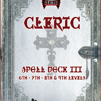 The Cleric Spell Deck III contains all the Core Rules class spells from level 6 through level 9, in a thick poker card deck format.