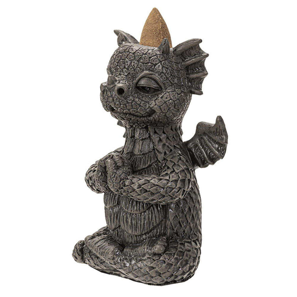 A wonderfully detailed dragon in a Yoga pose incense burner. Light your backflow incense cone and watch the smoke drift out of its nose. Works with backflow cones, which have a hole in the bottom allowing the smoke to flow downward into. Made of hand painted resin.