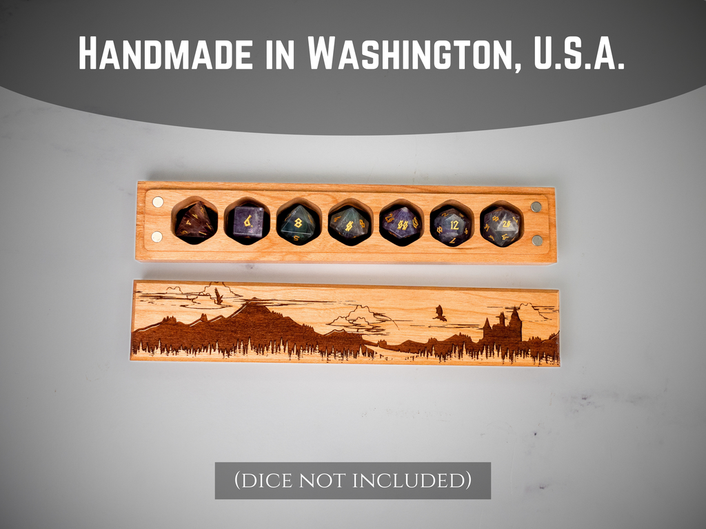 Elevate your tabletop gaming experience with this Fantasy Engraved Council of 7 Dice Vault, featuring stunning fantasy-themed engravings on premium wood. This beautifully crafted dice vault provides secure storage for your complete polyhedral dice set while adding an element of enchantment to your gaming table.