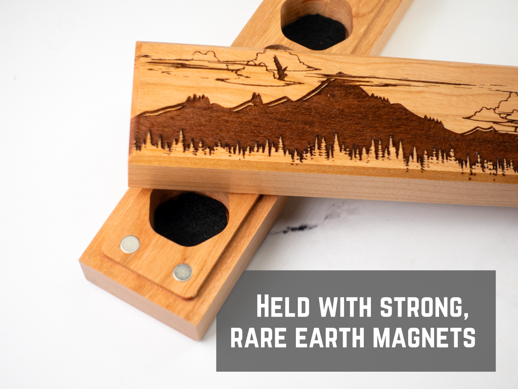 The Council of 7 design is specifically sized to hold a full set of RPG dice (d4, d6, d8, d10, d12, d20, and percentile die), keeping them organized and protected between adventures. The intricate fantasy engravings showcase mythical imagery that resonates with D&D, Pathfinder, and fantasy RPG enthusiasts. Crafted from quality wood with meticulous attention to detail, this dice vault combines practical functionality with artistic beauty.
