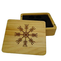 This wooden dice display and storage case features our I Drink and I Know Things design that is engraved on the lid of each lid. Each wooden dice case has two pieces, a base designed to hold your dice, and an engraved lid that is magnetically attached to the base.
