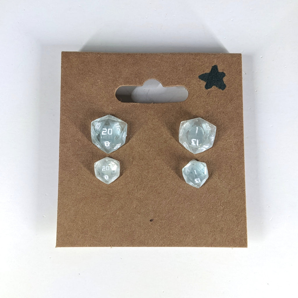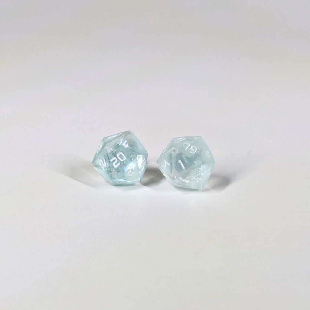 Ice Walker D20 Sterling Silver Stud Earrings - White Blue Ice Dice Jewelry