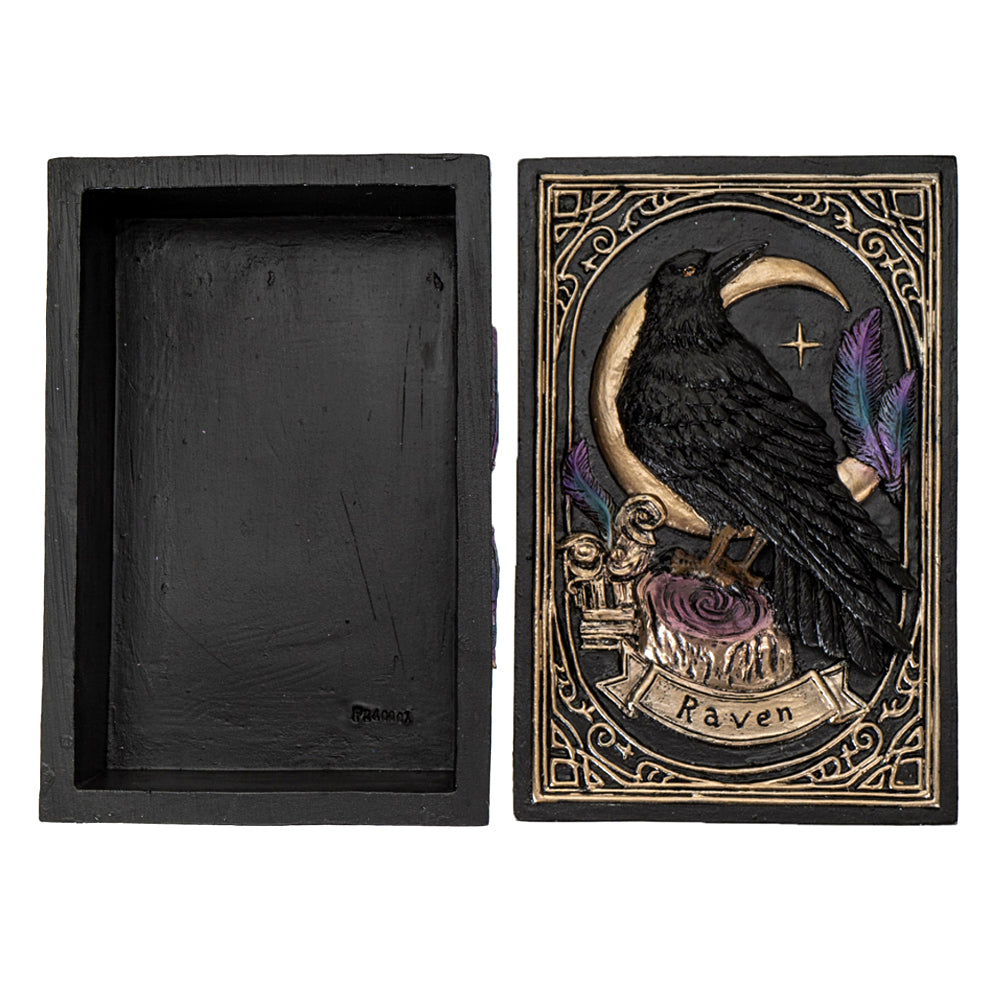 - Black raven in tarot card style on lid