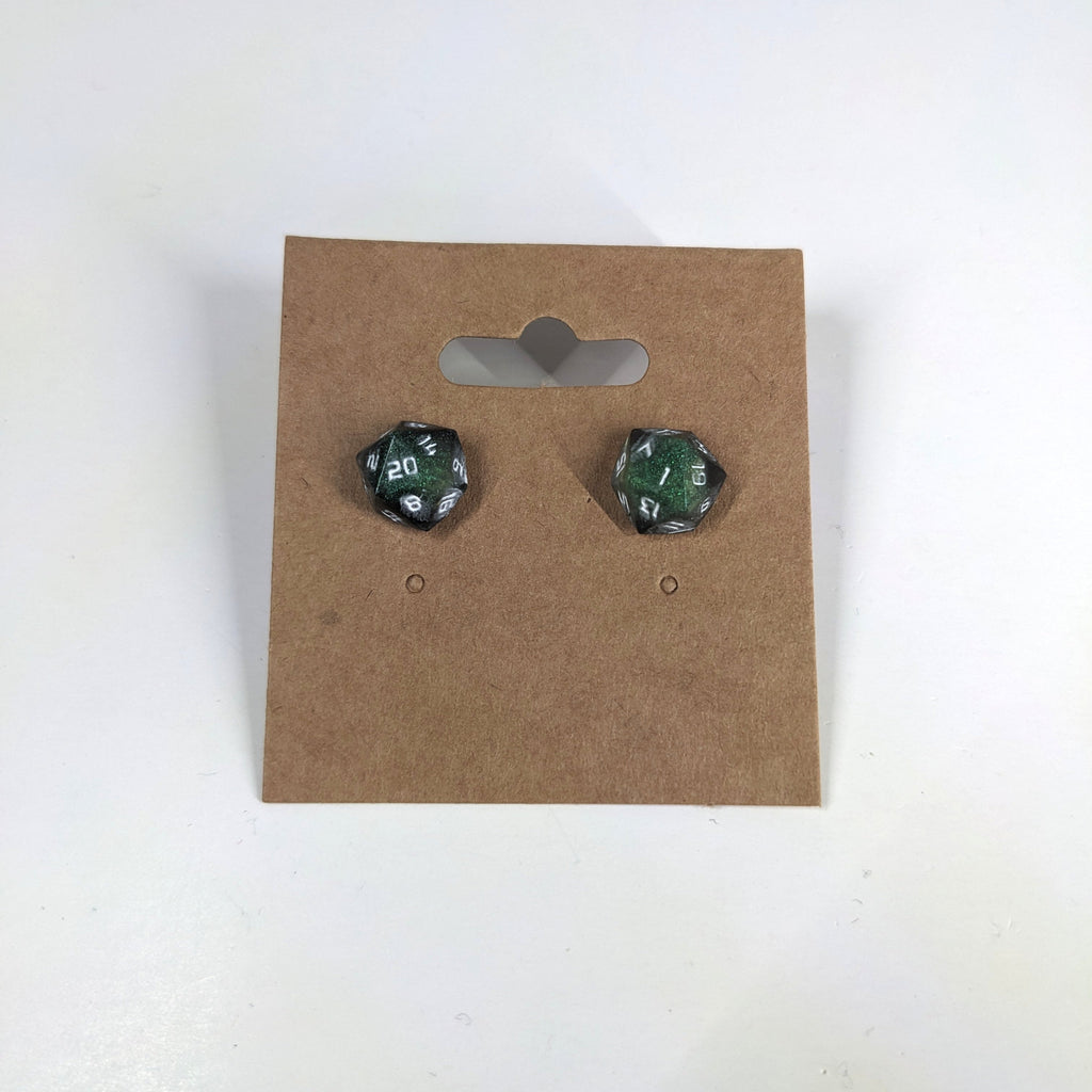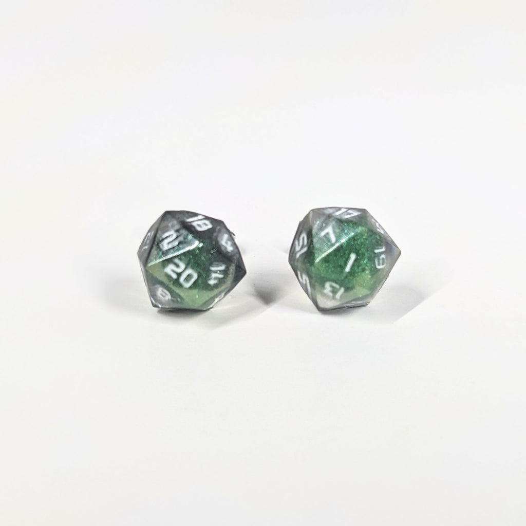 Serpent's Whisper D20 Stud Earrings - Green Silver Snake Dice Jewelry