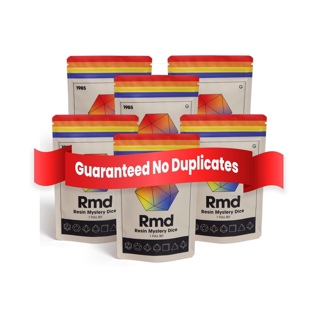 Add a dash of suspense with these mystery dice sets! With over 100 colors and styles available, you are sure to reveal a unique dice design every time. Perfect for players who crave one-of-a-kind and collectible dice. Every bag includes one complete RPG dice set, one enamel pin, and one sticker.