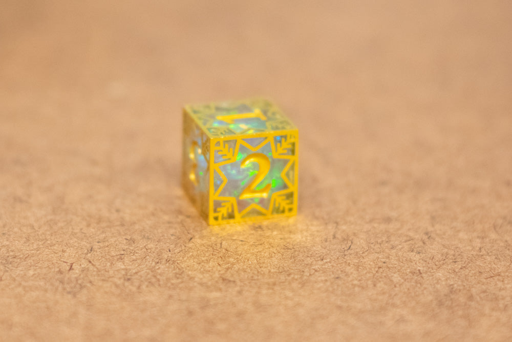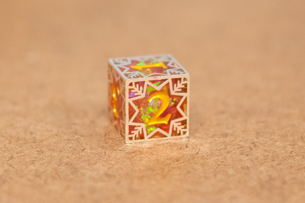 - Sharp Resin dice (Role Playing DnD dice) are encased in a gold color metal frame