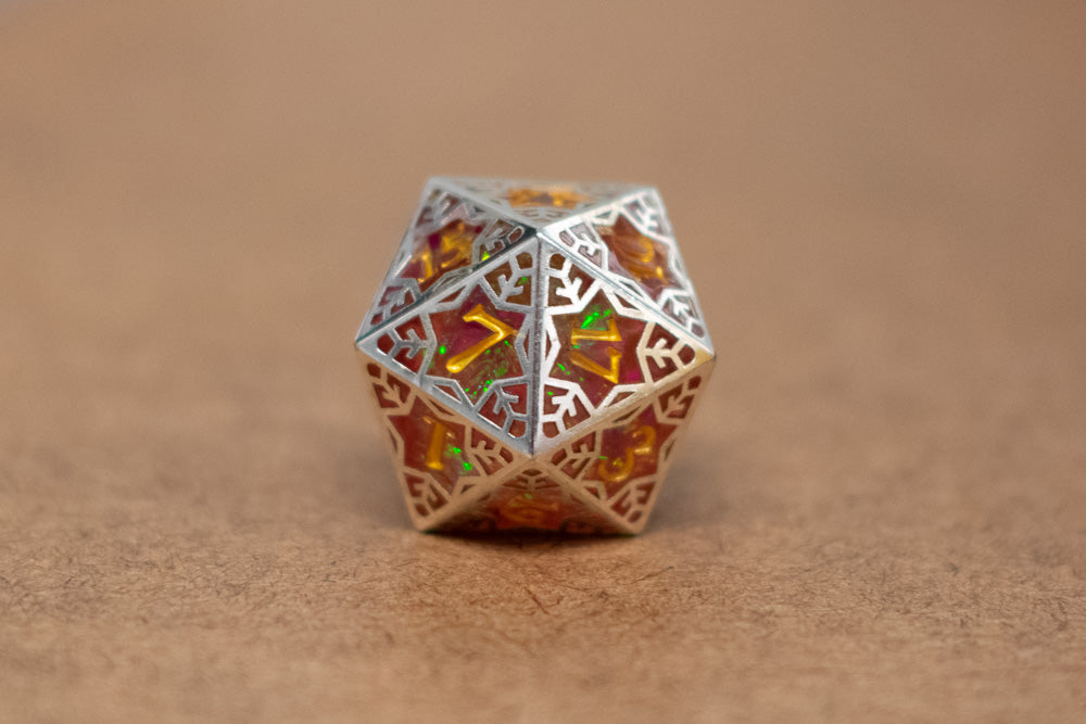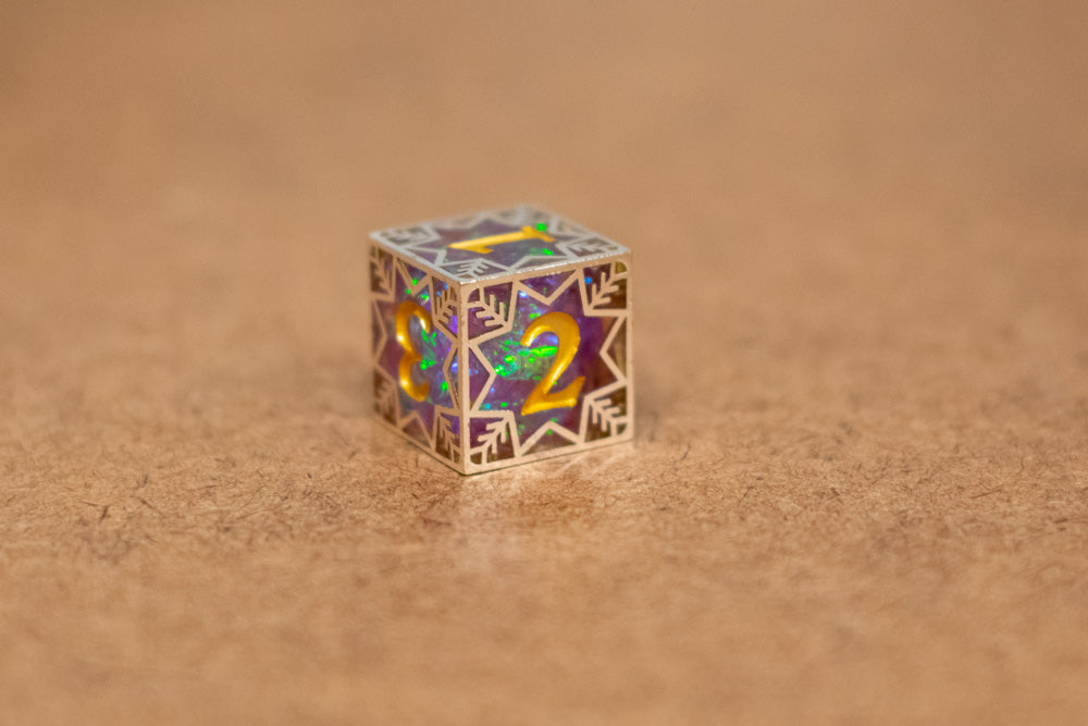 Single d20/d6 Forged in Frost (Resin Dice Encased in Metal) Permafrost/Purple/Opal/Dragon