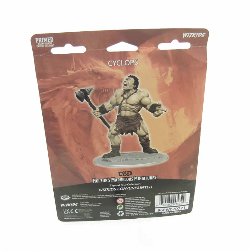 These fantastic miniatures come pre-primed with Acrylicos Vallejo primer and include deep cuts for easier hand painting. The packaging displays the miniature in a clear and visible format, so you know exactly what you're getting. Perfect for painters who want to create the Cyclops's massive single eye, muscular build, and imposing presence.