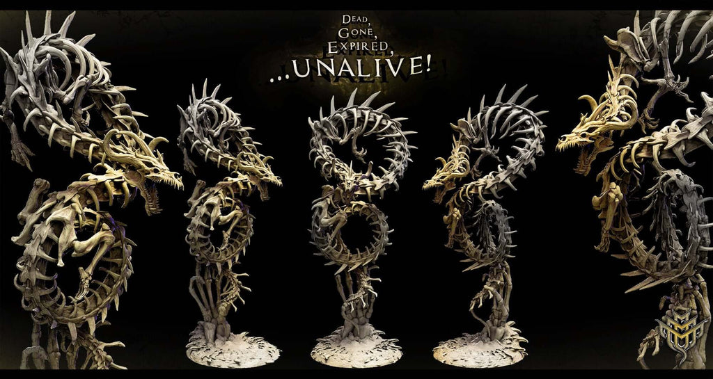 The Death Coil Dragon, a dracolich of serpentine elegance, twists through the air with a spectral grace. Its skeletal frame is adorned with dark, ethereal energy that pulsates ominously. This fearsome dracolich, embodying the dread of a thousand deaths, commands the skies in Pathfinder and D&D campaigns, where its presence heralds a chilling omen.
