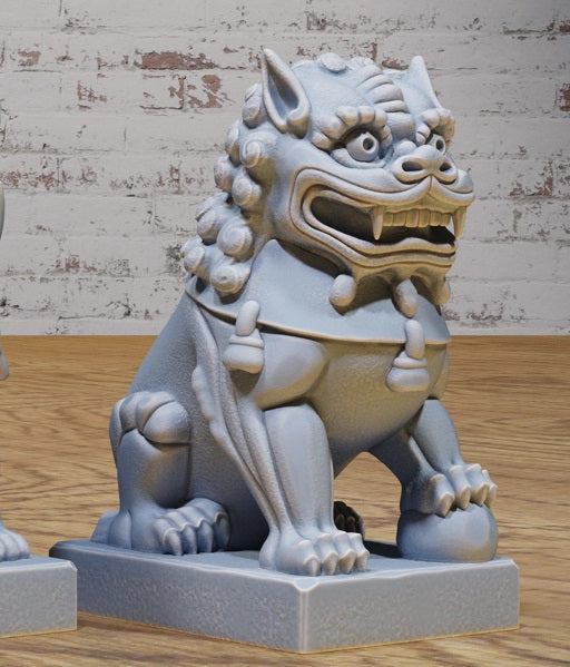 This Fuu Statue set features a pair of guardian dog statues with distinct, expressive faces, ideal for Eastern-inspired or mystical TTRPG settings such as Legend of the Five Rings or Pathfinder. These statues bring a formidable yet whimsical charm, suitable as mystical guardians in your tabletop adventures.