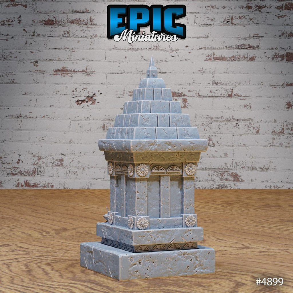 This Eastern Temple Scatter Tea Shrine brings a serene touch to your TTRPG settings, such as Pathfinder and D&D. With intricate carvings, stacked stone layers, and a tea set at the shrine's entrance, this piece embodies traditional charm, perfect for enhancing the ambiance of Eastern-inspired or mystical campaigns.