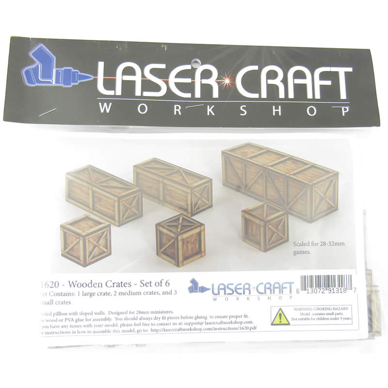 LCW1620 Wooden Assorted Crates Set of 6 28mm Scale Miniature Terrain Laser Craft