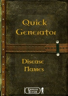This particular Quick Generator covers disease names and is suitable for a fantasy or medieval type of game or story, although this could also be used in sci-fi or modern settings to create the use/popular name of a disease.