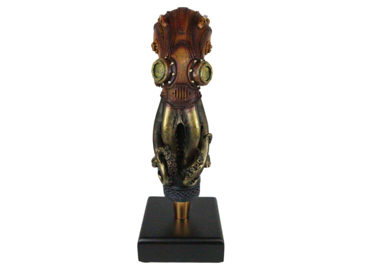 The Steampunk Kraken Beer Tap Handle is a stunningly detailed handle for your home or bar or home bar. Steampunk is a subgenre of science fiction or fantasy science that combines technology and artistic designs inspired by the 19th-century industrial steam-powered machinery. This Steampunk Kraken beer tap will fit standard US faucets with a 3/8 thread ferrule. This tap is made of cold cast resin and is finely carved and hand painted. This tap comes on an MDF base for display when not used as a tap.