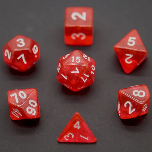 Elevate your gaming experience with the Radiant Ruby Red Polyhedral Dice Set – where beauty meets precision in every roll.