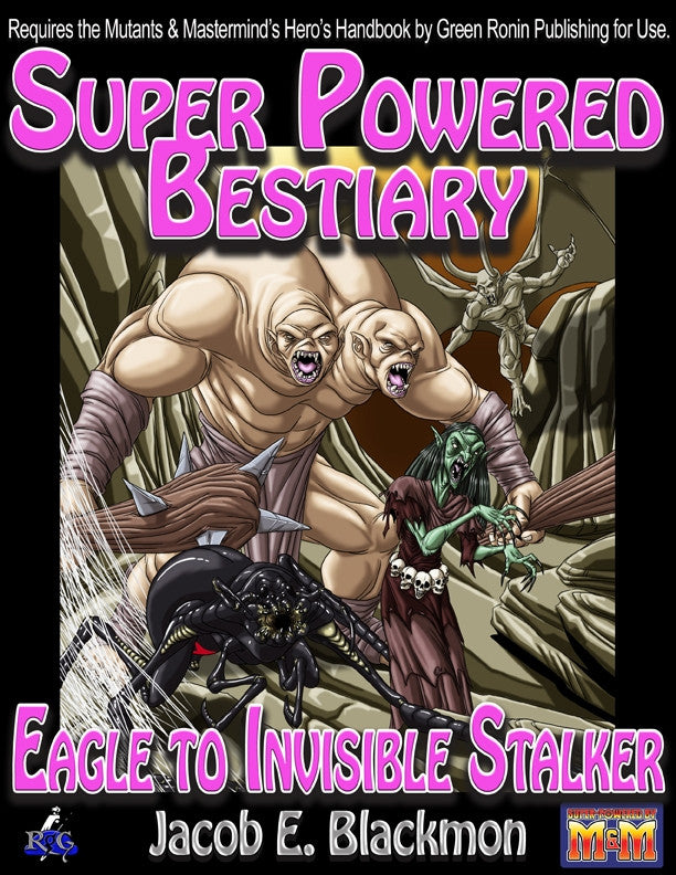 Volume Four of the Super Powered Bestiary provides more than 45 full creature write-ups for giants, genies and an invisible stalker (amongst others), compatible with the 3rd Ed M&M rules. Obviously of great use to anyone running a fantasy-themed game with this ruleset, the Super Power Bestiary also provides options for more traditional supers and masked adventurer games!