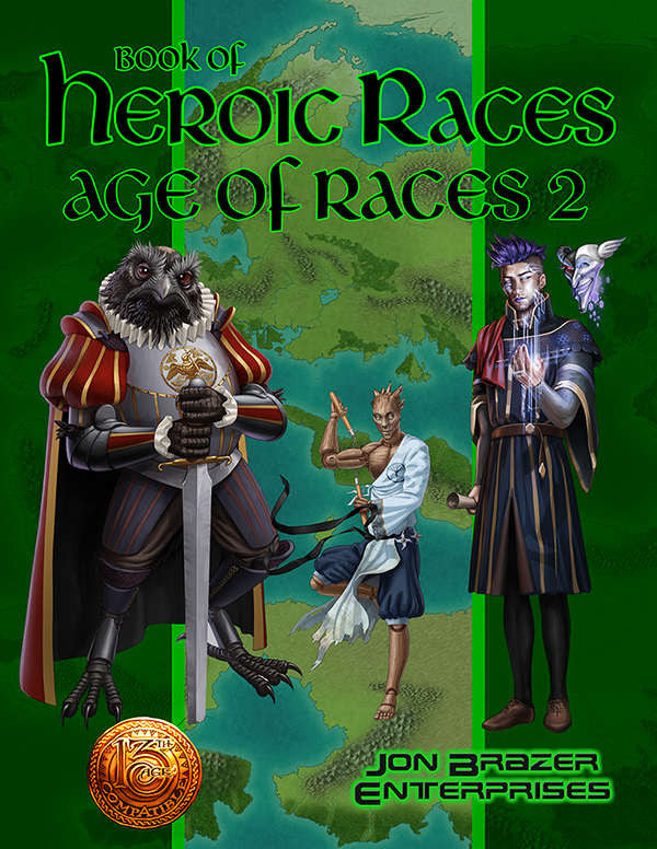 Book of Heroic Races: Age of Races 2 introduces a number of playable races for your 13th Age Compatible game. This 17-page supplement gives you everything you need to include the following races at your table: