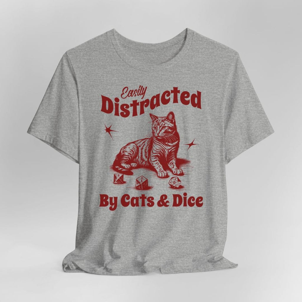 For those who can’t resist a cat's charm or a good dice roll—this shirt is for the easily distracted adventurer! Whether it’s cuddles or crits, we’re all about purrs and rolls.