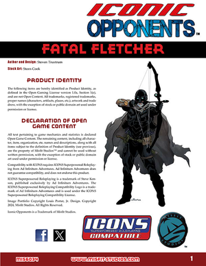 Iconic Opponents: Fatal Fletcher presents a former bow-wielding hero who became an assassin specializing in killing metahumans after his superhero son was killed by supervillains.