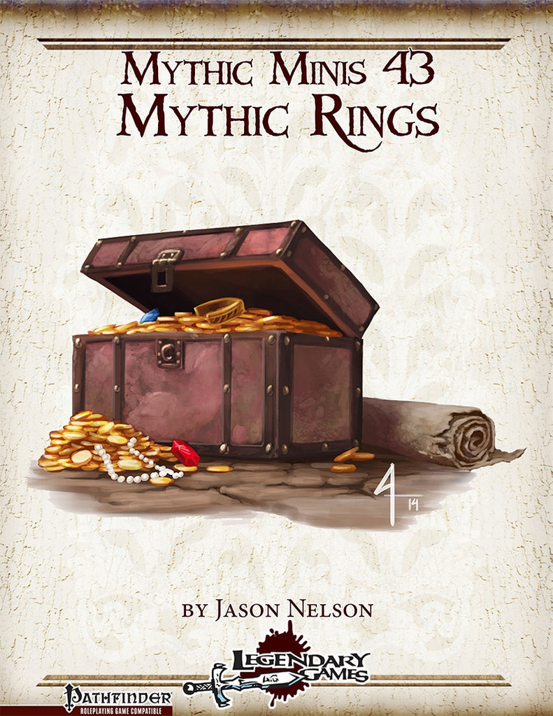 Mythic Rings is our second Mythic Minis devoted to mythic magic items that create unique mythic effects. Some can be used only by mythic wielders, while others are useful for all characters but have effects enhanced or new abilities unlocked in the hands of mythic wielders. Mythic Rods brings you 4 brand-new items, the gauss ring, ring of returning, ring of truth, and ring of warmth!