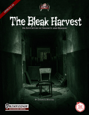 The Bleak Harvest is a horror-themed adventure for 8th- to 9th-level characters. Written for the Pathfinder Roleplaying Game and Fifth Edition Fantasy, this adventure can be dropped into any preexisting campaign with minimal changes required.