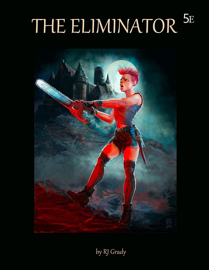 The eliminator, a complete 20-level character class for your Fifth Edition game, lets you play a modern action hero living in a fantasy realm. Arm yourself with shotguns, chainsaws, moxie, and a steady supply of one-liners to take on the bad guys.