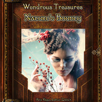 This book focuses on magic items from the natural world, including items made from branches, flowers, leaves, and roots, and more. While many adventurers may be used to magic items being something deliberately made and crafted by artisans and scholars, the primal world of nature is, itself, a boundless source of mystical and magical energy, and the fantasy genre is rife with examples of mystic glades and enchanted forests filled with natural objects whose very purity and separation from civilization instill them with a unique and primal magic, and these are the sorts of items with which we’ve filled this tome.