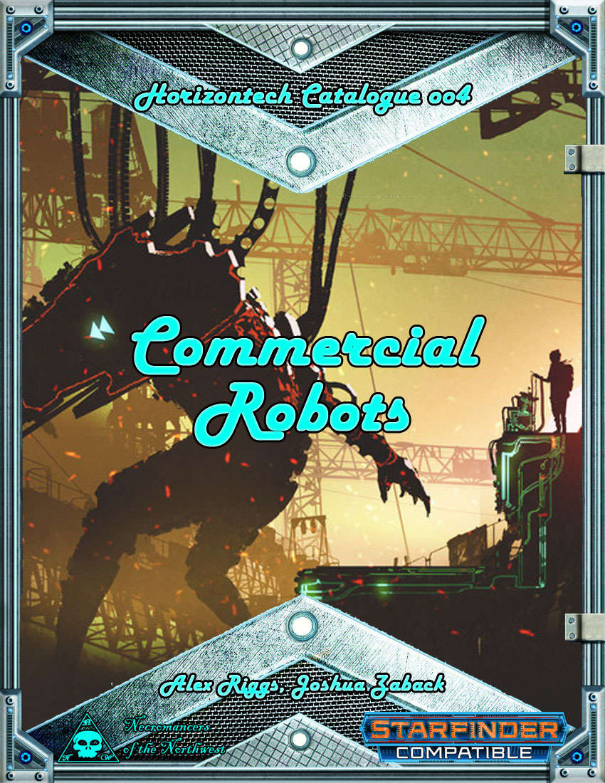 Horizontech Catalogues contain all the newest and best developments from Horizontech Industries, the galactic leader in innovation and progress. This issue presents five new robots, each with a full stat-block, useful new abilities, and information on their purchase and use. Included are the personal assistant, rover combat drone, raptor hunter surveillance drone, marine shark drone, and class II probe. When you think of the future of technology, think Horizontech!