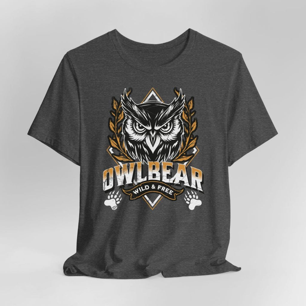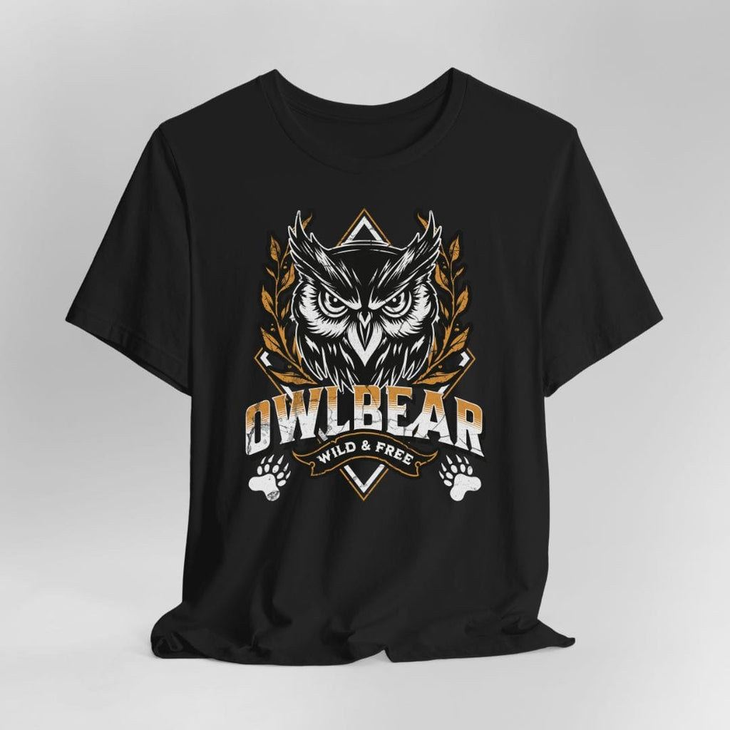 Unleash your wild side with this bold owlbear shirt, featuring a fierce, stylized owlbear design that’s perfect for tabletop adventurers and D&D fans alike. With its striking black-and-gold graphic, this shirt captures the spirit of the legendary creature—part owl, part bear, all attitude. Whether you're rolling dice at game night or repping your favorite monster out in the world, this owlbear shirt is a must-have for any dungeon crawler’s wardrobe. Ideal gift for Dungeons & Dragons players who want to show off their love for iconic beasts in epic style.