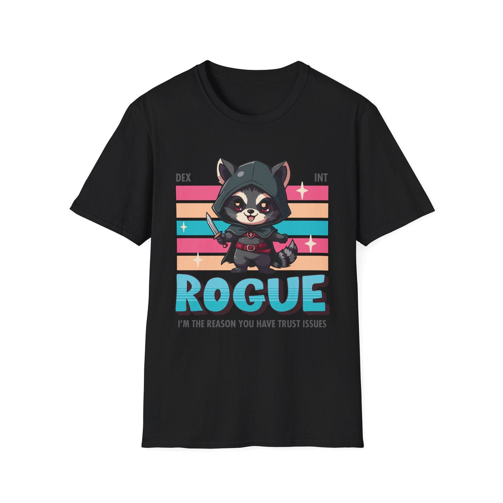 Unleash your mischievous side with our DnD Rogue Shirt! Featuring a kawaii raccoon rogue, this t-shirt is perfect for any Dungeons & Dragons fan looking to add some cuteness to their rogue class.