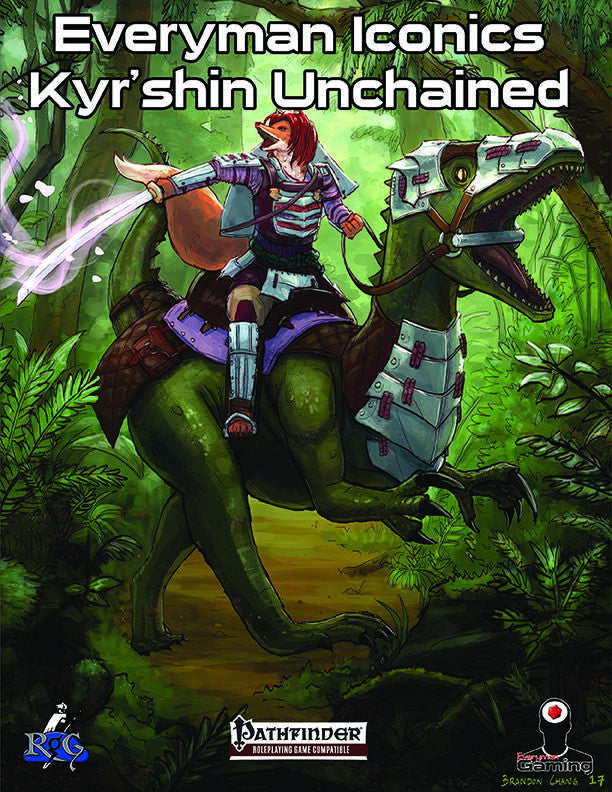 - Kyr’shin Yilenzo, Everyman Gaming’s iconic Fighter. Uses rules from Everyman Gaming’s hit product, Everyman Unchained: Fighters. *Includes a detailed character gazetteer featuring Kyr’shin’s vital statistics and character history.
