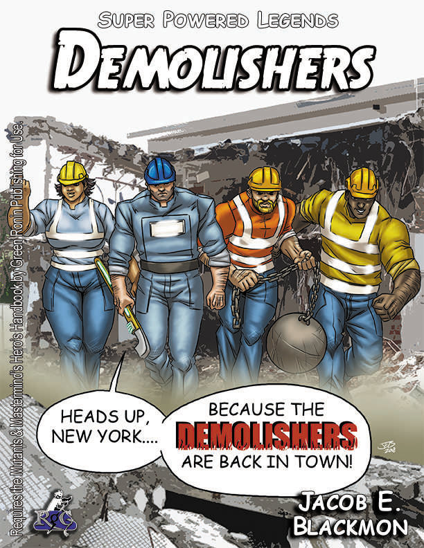 The Demolisher (PL 10) and his crew (PL 8), used to clean up the city after superhumans had their fights. But one day, the Demolisher found an alien artifact in the wreckage that gave him super strength, and he saw a different way to make money in his future ...