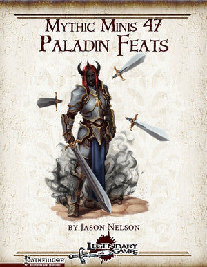Paladin Feats brings you 12 mythic feats for your paragons of purity to bring forth and smite the wicked and save those in need, these feats enhance their abilities of protection like Channeled Shield Wall and Fearless Aura as well as their powers to expand their suite of powers to cope with all manner of threats, like Radiant Charge, Unsanctioned Knowledge, and Ultimate Mercy!