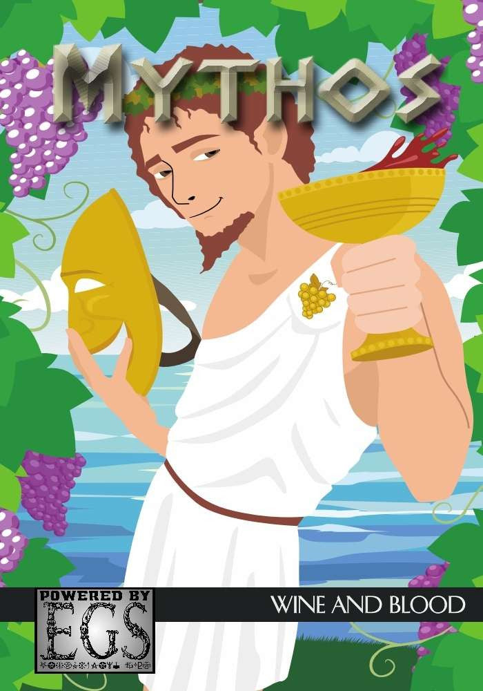Wine and Blood is the first supplement for Mythos, a setting of epic adventures in mythological Ancient Greece. This first supplement details Dionysus as he enters the Heavenly Contest as Zagreus. With his entry into the Heavenly Contest, Dionysus, as Zagreus, grows in Patron Deity potential with Mystery Cults, new heroes to sire, and new lands to explore!