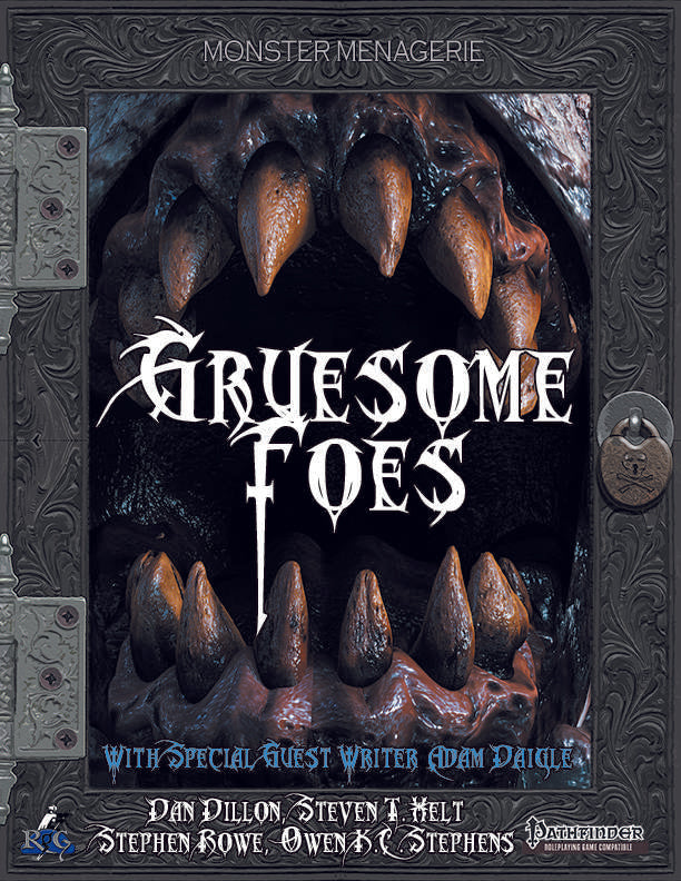 Gruesome Foes presents new templates, feats, and alternative class feature options to add to almost any monster. All of these gruesome templates are designed to play into a specific fearsome idea and provide an extra dose of horror for encounters using them, such as a massive foes wrapped in rotting limbs, or insane walking vivisections sharing glimpses of alien worlds.