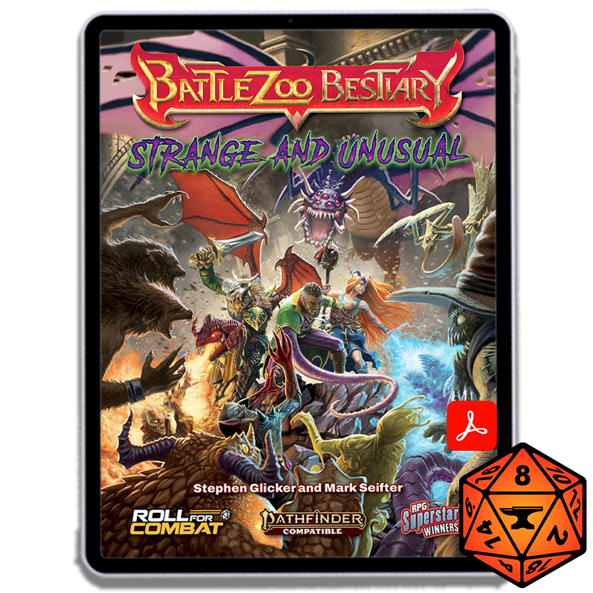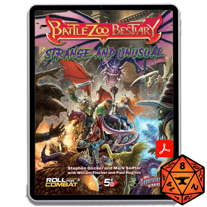 Are you ready for the weirdest and most unexpected award-winning monsters around? Battlezoo Bestiary: Strange and Unusual is the long-awaited effort of the 2021 RPG Superstar contest, in which hundreds of monster fans and aspiring designers submitted their most unusual creature ideas to be judged by both professional RPG Designers and the community. In addition to the monsters, you'll find an exciting expansion to the monster parts system from the original Battlezoo Bestiary and more!