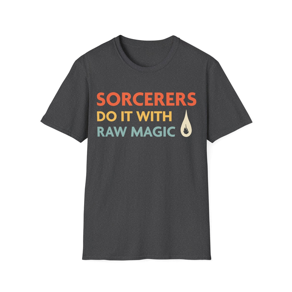 Unleash your inner adventurer with our 'Sorcerers Do It With Raw Magic' t-shirt! Embrace your role, express your style, and let the world know just how your favorite class gets things done in the realm of fantasy! This fun D&D sorcerer class shirt is sure to be a hit on game night.
