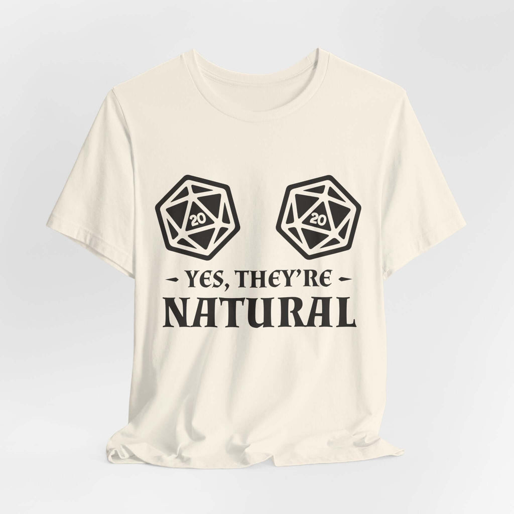 If you like your D&D with a bit of inuendo, check out the "Yes They're Natural" DnD D20 Shirt. Featuring a playful design and unisex fit, this hilarious dnd shirt is ideal for all your tabletop escapades. Express your passion for the game with pizzazz.